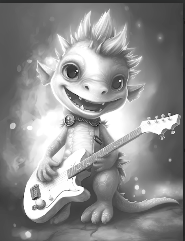 امنح لمستك الفنية لمسة من المرح والطاقة الموسيقية مع شخصية تنينك الروكستار المدهشة! ????????