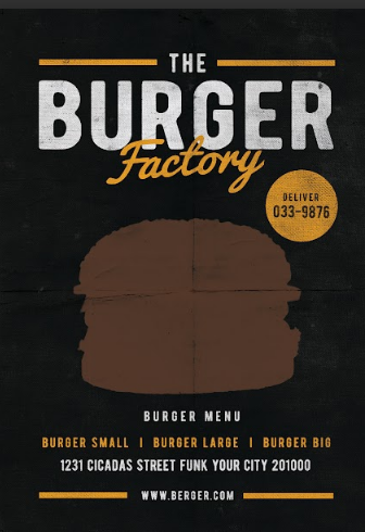 أضف لمسة احترافية إلى مشروعك مع هذا التصميم الرقمي الأنيق لقائمة طعام Burger Factory.