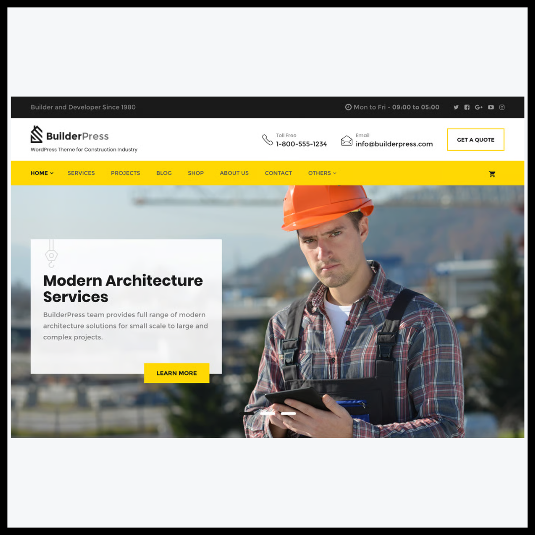 من الناحية التقنية، تم بناء BuilderPress WordPress Theme باستخدام تقنيات حديثة مثل HTML5 وCSS3، وهو متوافق مع جميع المتصفحات الحديثة ويتميز بسرعة تحميل عالية وأداء مستقر. كما أنه مهيأ لتحسين محركات البحث (SEO Optimized)، مما يساعد الموقع على الظهور في نتائج البحث الأولى وزيادة عدد الزوار المحتملين.