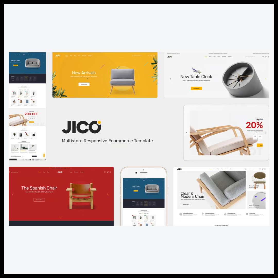يأتي Jico بروح معاصرة تُمزج فيها الفخامة الهادئة مع الوظائف العملية، حيث يعتمد تصميمه على التوازن المثالي بين المساحات البيضاء الواسعة والعناصر البصرية الدقيقة التي تتيح للمنتجات أن تتحدث عن نفسها. إنه قالب يضع الجمال في خدمة الوظيفة، إذ يهدف إلى خلق تجربة تصفح مريحة تجعل الزائر يشعر وكأنه يتجول في معرض واقعي للأثاث والديكور، حيث تتجسد التفاصيل في كل زاوية وصورة.