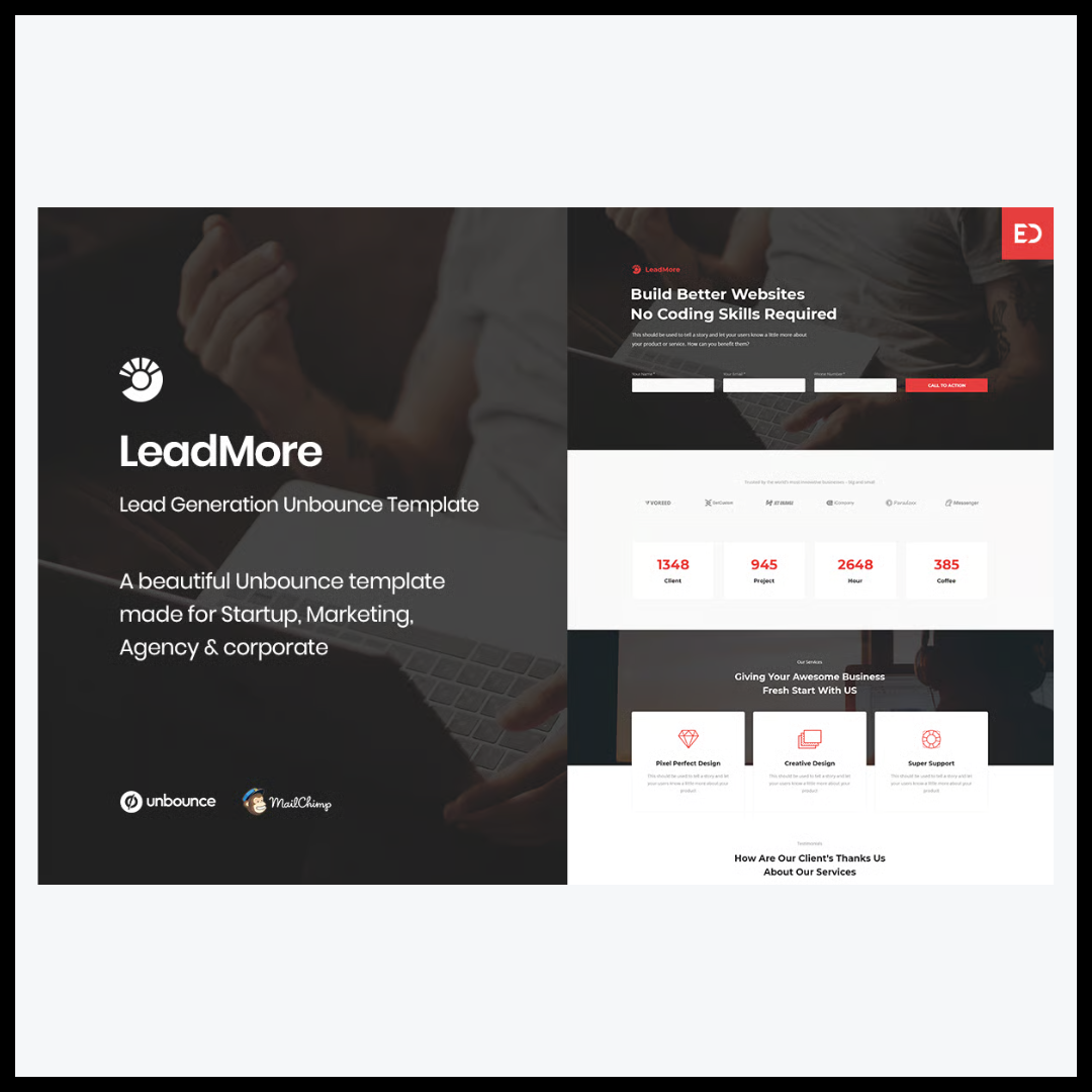يُعد Elements Leadmore – Lead Generation Unbounce Landing منتجًا رقميًا مميزًا تم تصميمه بعناية ليوفر تجربة احترافية في إنشاء صفحات هبوط تسويقية جذابة وفعالة باستخدام منصة Unbounce. هذا القالب يمثل الخيار الأمثل لكل من يسعى إلى بناء مشروع رقمي ناجح يعتمد على التصميم العصري، البنية القوية، وسهولة الاستخدام في الوقت ذاته، مما يجعله أداة مثالية لتأسيس حضور رقمي قوي ومؤثر.