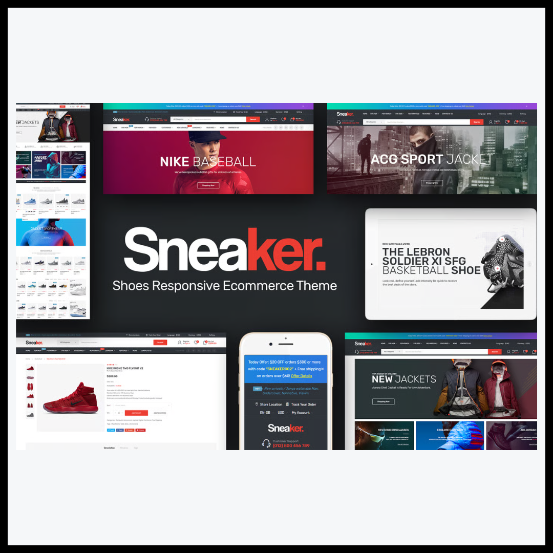 تم تصميم Multi-Purpose Magento Theme – Sneakers Store على منصة Magento المعروفة بقوتها ومرونتها في إدارة المتاجر الإلكترونية الضخمة، مما يجعل هذا القالب مثاليًا للعلامات التجارية التي تسعى لتوسيع حضورها الرقمي وتحقيق أداء تسويقي فعال. يعتمد القالب على تصميم متجاوب بالكامل يتأقلم مع مختلف أحجام الشاشات والأجهزة، سواء الهواتف المحمولة أو الحواسيب أو الأجهزة اللوحية، مما يضمن تجربة مستخدم سلسة ومريحة في جميع الأوقات.