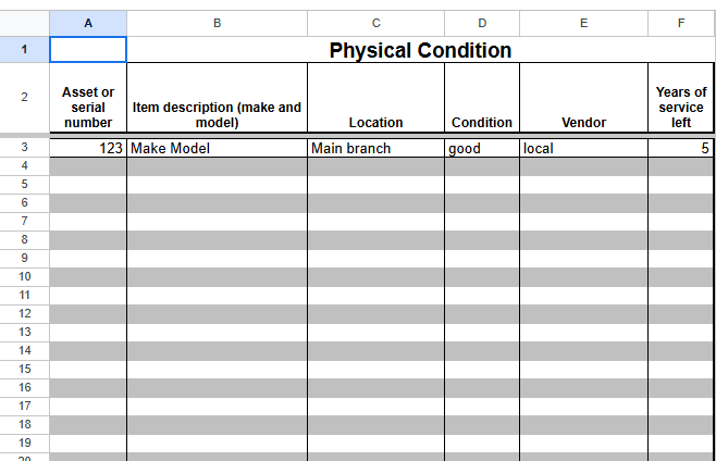 كما أن Equipment inventory list1.xls يسهل عملية إعداد تقارير مفصلة عن حالة المعدات، مما يساعد الإدارة على اتخاذ قرارات دقيقة بشأن الصيانة، الاستبدال، أو الاستثمار في معدات جديدة. وبفضل اعتماده على صيغة رقمية قابلة للتخصيص، فإنه يوفر مرونة كبيرة لتلبية احتياجات مختلف القطاعات مثل الشركات الصناعية، المكاتب، المدارس، والمستودعات.